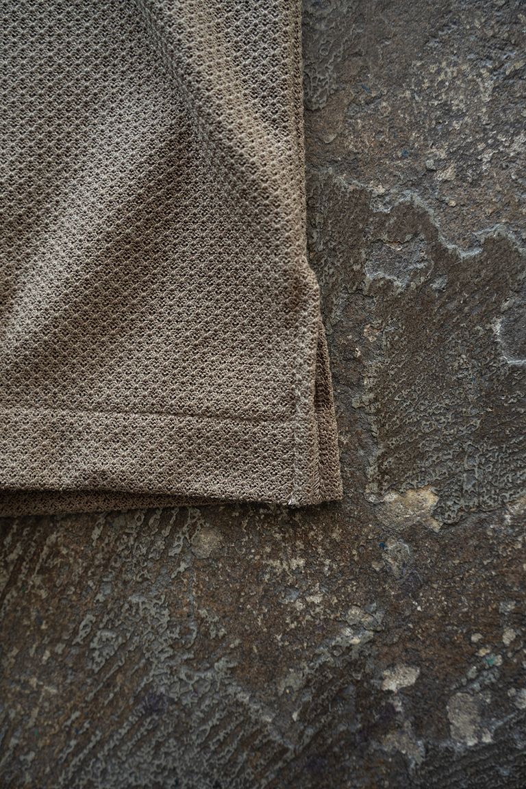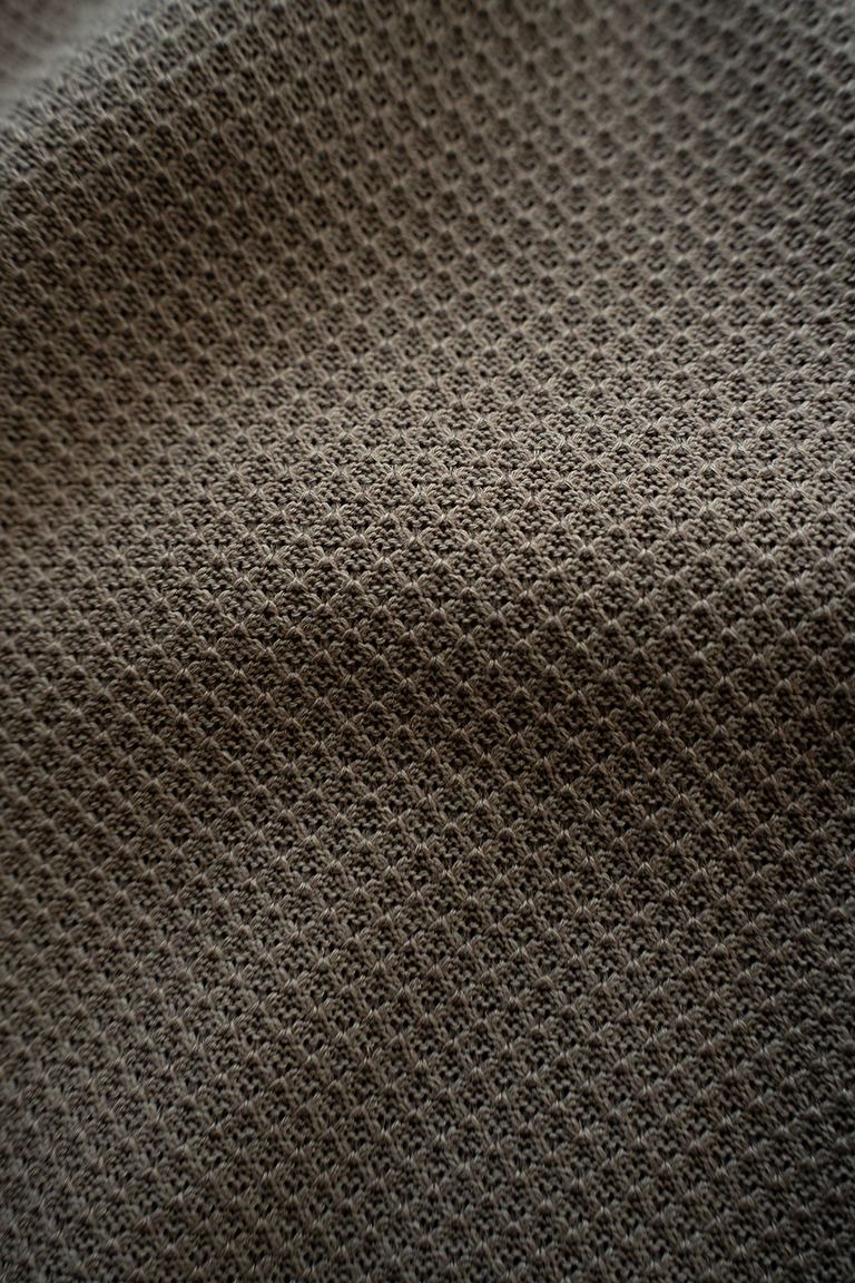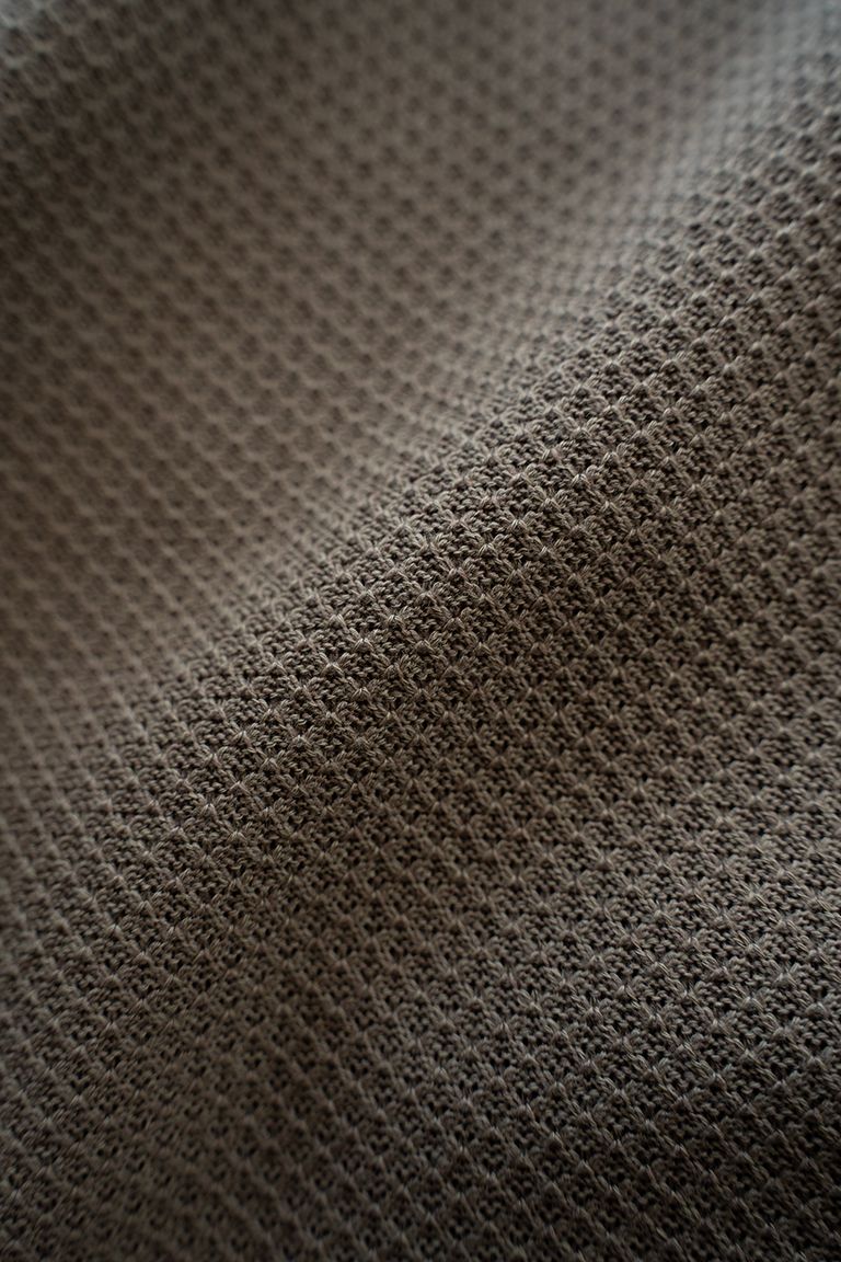 甘めに編み立てることでわずかに透け感があり、通気性にも優れ、蒸し暑い季節でもベタつきにくく快適にご着用いただけます。