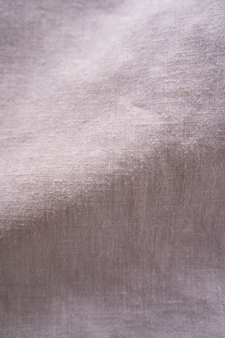 こちらの作品では、経糸にコットン、横糸にヘンプを打ち込んだ平織り生地を使用しております。