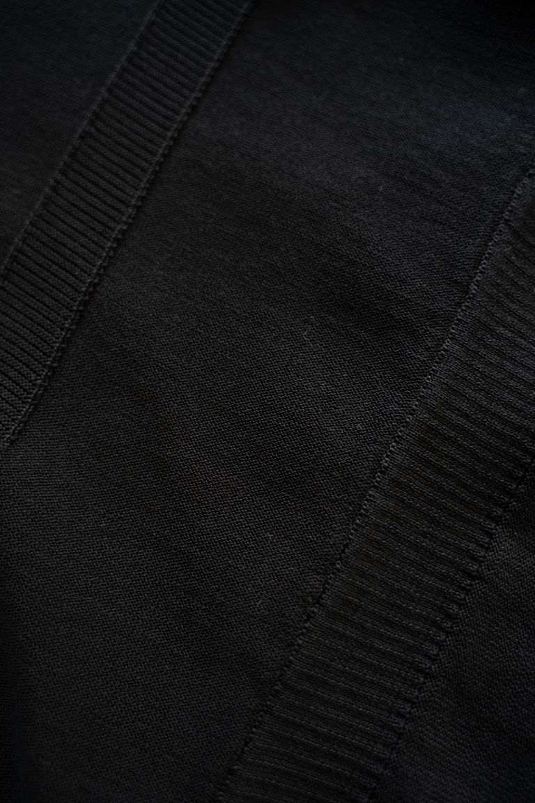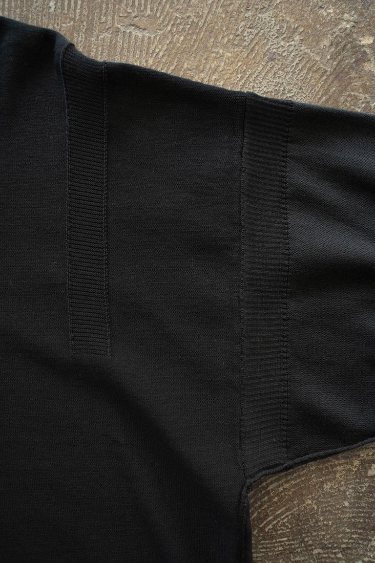 こちらの作品で使用している生地は、12ゲージの編み機に80番手双糸を4本取りして編み立てております。